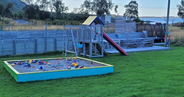 Cette après-midi, nous sommes dans un très beau coin nature devant un fjord des Alpes de Lyngen avec WC chauffés, douches, abri feu, tables de pique .