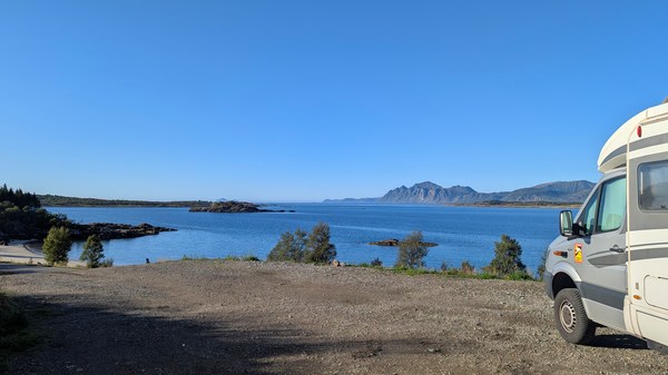 Nous avons donc regardé où il y avait du soleil sans aller trop loin: les Lofoten. Actuellement il fait 19 degrés à 17h. Le KP est à 5, l’horizon dégagé, grand ciel bleu, on aimerait bien que cela fonctionne.
