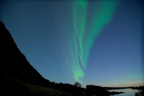 Super emplacement au 70eme parallèle, vue dégagée à 180 degrés sur le Grunnfjord, pas de nuages pour le moment, KP à 5, donc tous les ingrédients sont là et les espoirs sont permis.