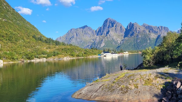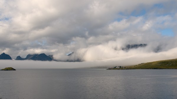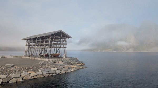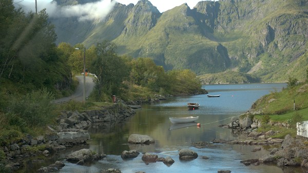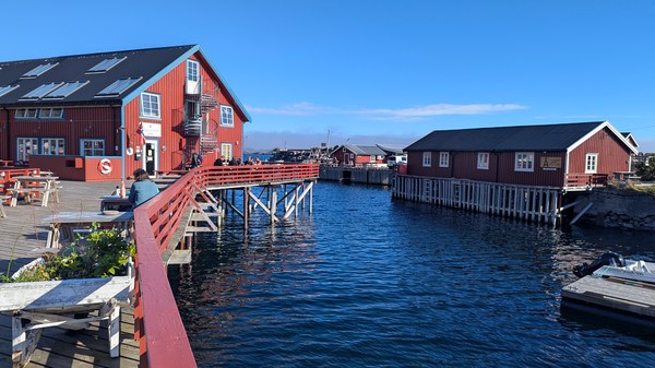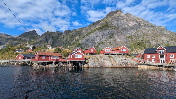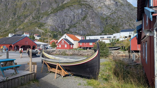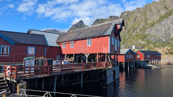 Nous avons passé la journée à Reine et à Å, le dernier village au sud de l’île. La matinée a commencé dans le brouillard qui peu à peu s’est dissipé pour faire place à un beau soleil. Nous avons revu avec plaisir ces lieux magnifiques au pied des montagnes et face à la mer. Il nous manque juste l’odeur et la vue des poissons qui sèchent après la saison de pêche qui a lieu entre février et avril.