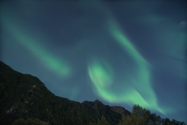 Et ça a fonctionné ! La première à 22h30, bien verte, et après ce fut un défilé non stop jusqu’à 1h. Un spectacle de draperies, ondulations éphémères qui s’évaporent dans la nuit polaire. L’œil ne saisit pas toujours les couleurs surtout le violet ou le rouge mais l’appareil photo lui les capte en prise lente. Bien emmitouflés, nous étions dans un spectacle….grandeur nature.