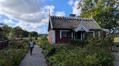Nous prenons la route et un pont pour l’île de Tjorn et on s’arrête dans une ferme : Sundsby Sateri classée comme site historique et on tombe par hasard sur la fête des moissons. On y prendra un café et un kanelbulle devant un petit groupe de musiciens et dans une ambiance très champêtre.