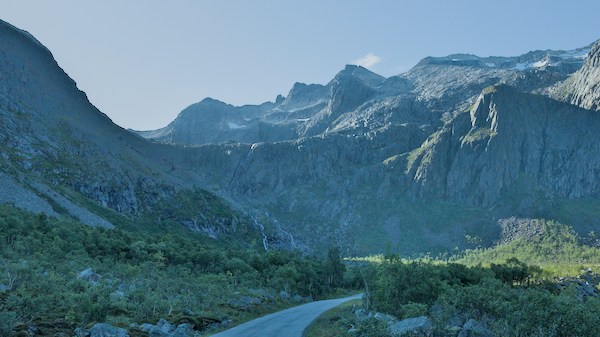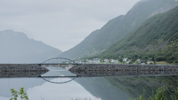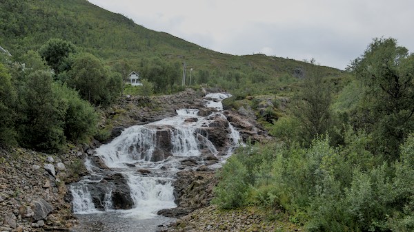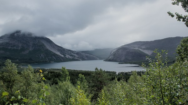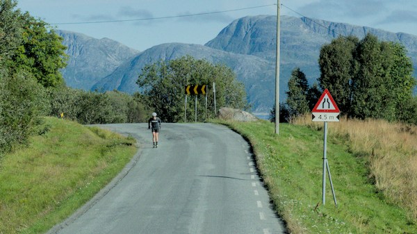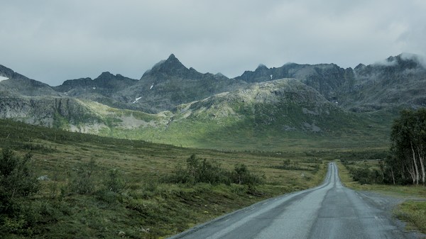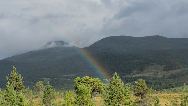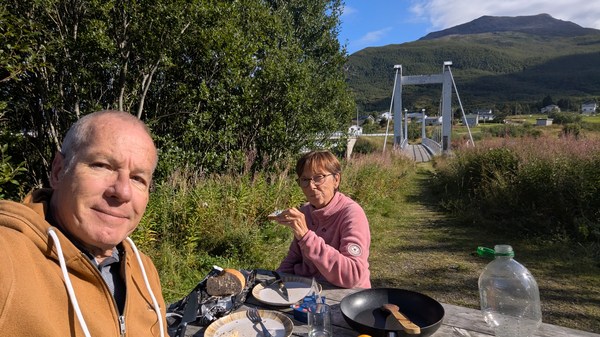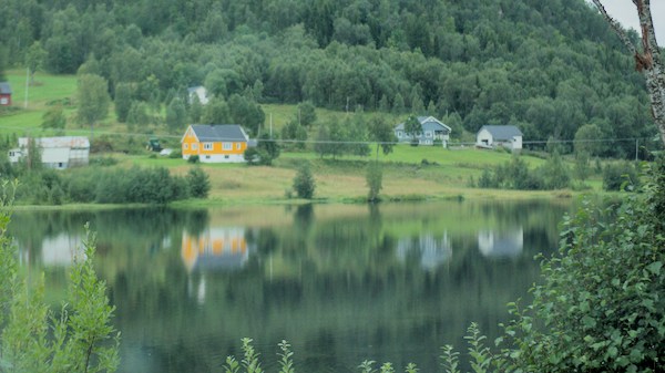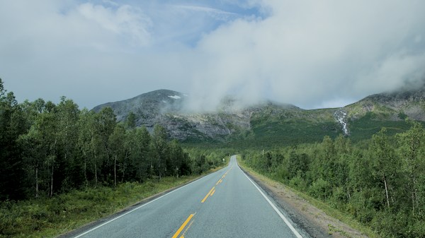 Nous sommes en Norvège, un simple petit panneau nous indique que l’on traverse une frontière. Les paysages ont pris du relief, la température baisse d’un cran et la garde robe se transforme en vêtements chauds, chaussures de montagne et…couette.