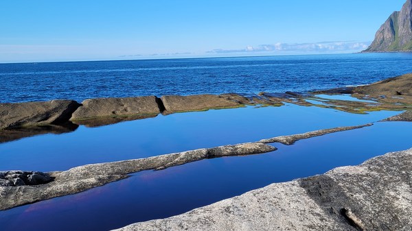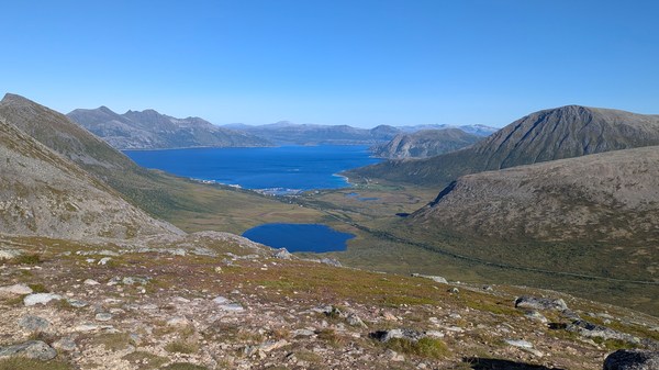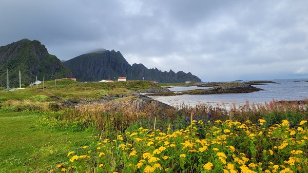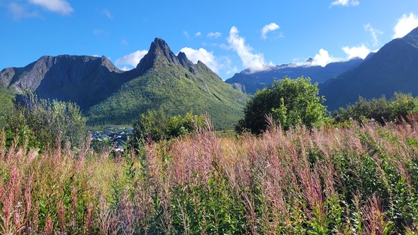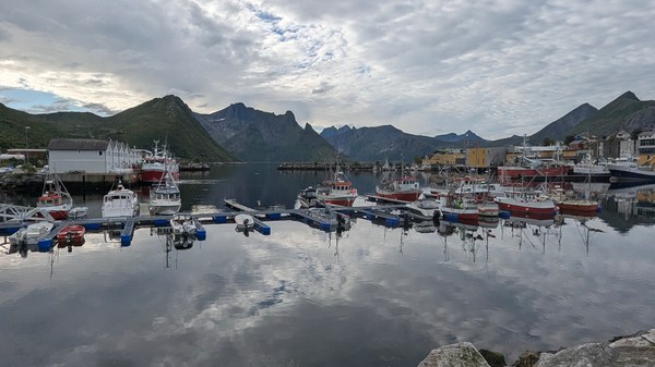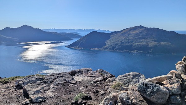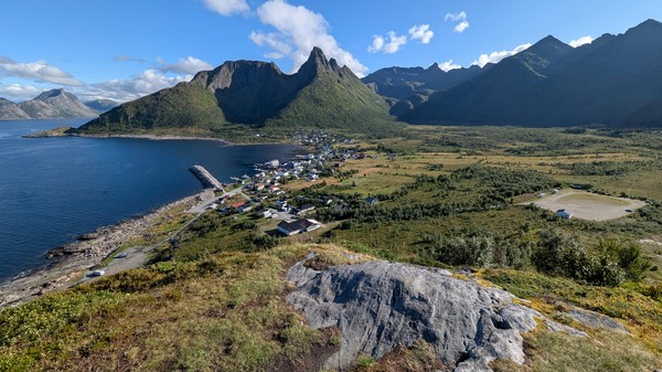 Après quelques stop de pêche et un gros maquereau, nous ferons une ballade jusqu’à un très beau point de vue au dessus de Mefjordvaer.