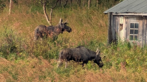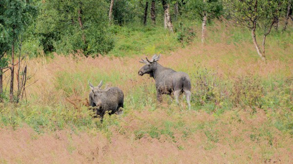 Aujourd’hui nous avons un peu roulé, pris deux ferries pour rejoindre l’île de Senja mais la réussite de cette journée on la doit à un beau couple d’élans observés ce matin par le plus grand des hasards. Il fallait juste tourner la tête au bon moment.