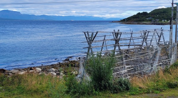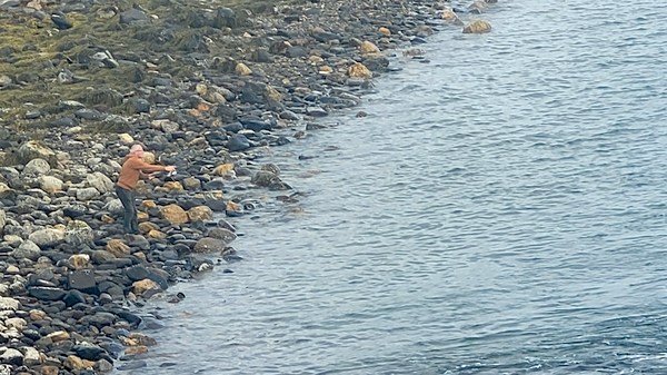 Nous sommes arrivés après une heure de ferry sur l’île de Andoya faisant partie des îles Vesteralen. Le fjord devant lequel nous sommes est à marée basse donc pas de pêche. Une belle rivière qui l’alimente est très fréquentée par les pêcheurs de saumons. La promenade sur ses rives est très agréable et nous rencontrons une dame qui en a attrapé 3 aujourd’hui.