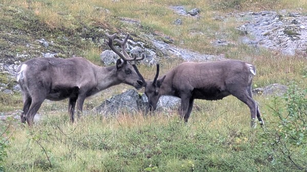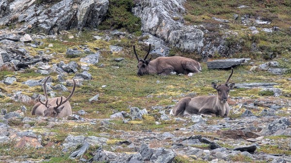 Nous ferons une nouvelle cueillette de myrtilles (1kg 300), une jolie randonnée jusqu’à un lac en compagnie d’un petit groupe de rennes.