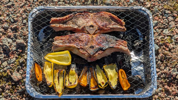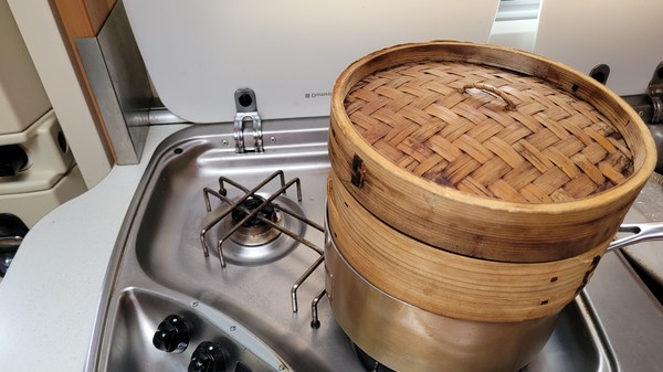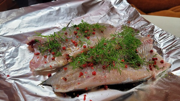 Nous mangeons du poisson un jour sur deux et remplissons le congélateur. Ils sont cuits à la vapeur avec des pommes de terre ou du riz.