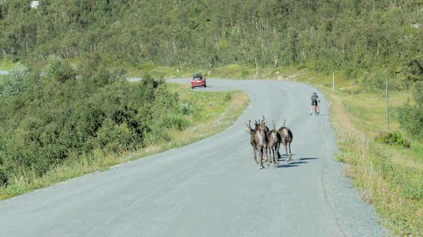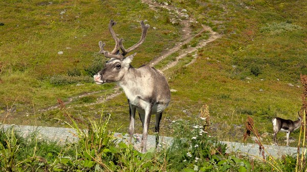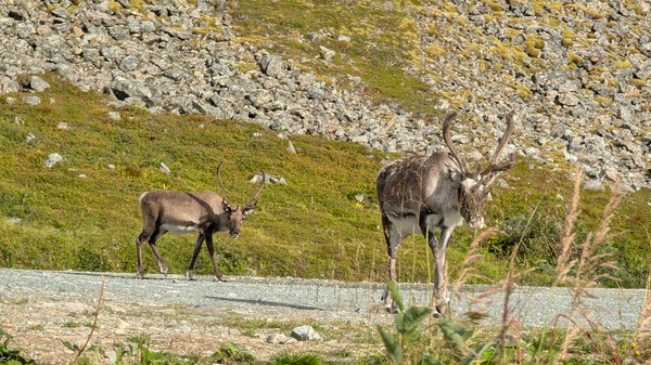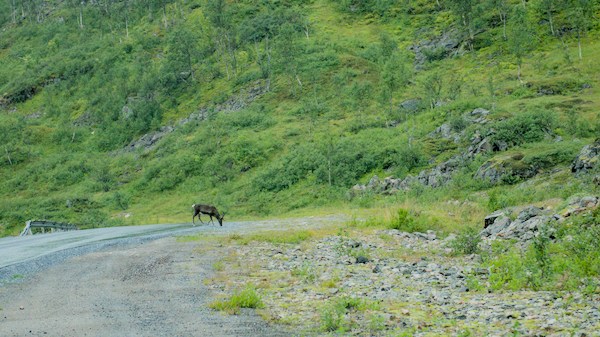 Une belle surprise ce matin que ce renne majestueux et fier qui a traversé nonchalamment la route avant de prendre son petit déjeuner devant l’objectif.